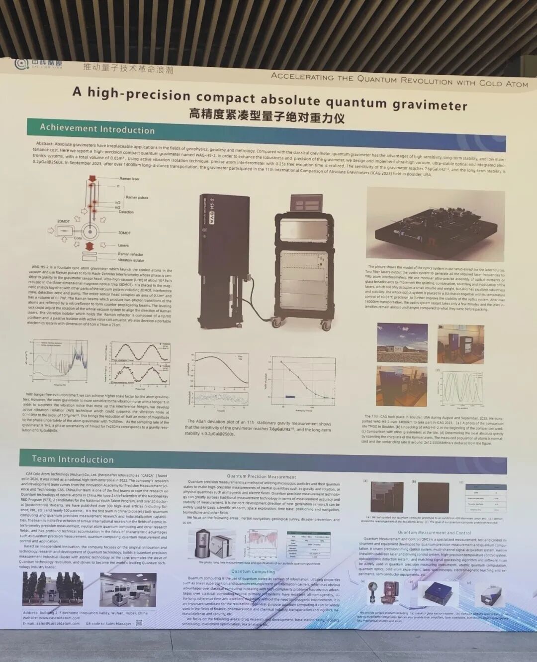 本次大会同期举办了“量子光子学优秀成果展”,中科酷原的核心产品高精度紧凑型量子绝对重力仪(High-precision compact absolute quantum gravimeter)入选并受邀进行现场分享。